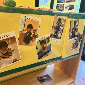 ブロックコーナーに、作品と作った本人の写真を掲示しています!コーナー内に写真を貼ることで、同じものを作ろうとしたり、「この前○○くんが作ってたね」といった会話をしていたり、アイデアのきっかけに繋がっています。