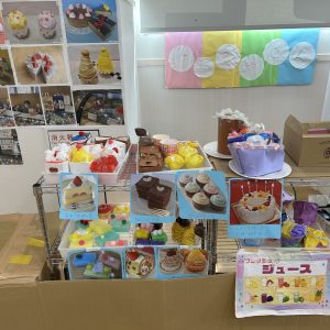 テーマごとに飾る場所を分けています。例えば、ケーキ屋さんならケーキの種類ごとに、乗り物なら車種ごとに、衣装の場合はハンガーにかけてクローゼットのように収納兼展示をしています。コーナーの場所を確立していることで、作品を飾る場所が明確になり、テーマ性がさらに際立つようになっています。