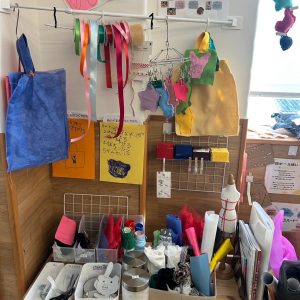 私たちの園では、子ども達で伝えあうことを大切にしています。例えば、素材がばらまかれてしまったとき、使いたかった子はどのように感じたのか、どうしてほしいのかを相手に伝えたり、一緒に考えたりします。また、ばらまいてしまった子はどのような思いがあったのか、言葉で伝えてもらったり、普段の様子から考えたりします。このようなことを積み重ねていくことで、だんだんと素材との向き合い方がわかってくると考えています。